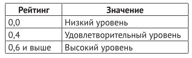 Значения между 0,0 и 0,4, а также между 0,4 и 0,6 никогда не используются. Значения, ассоциированные с каждым рейтингом, показаны ниже: