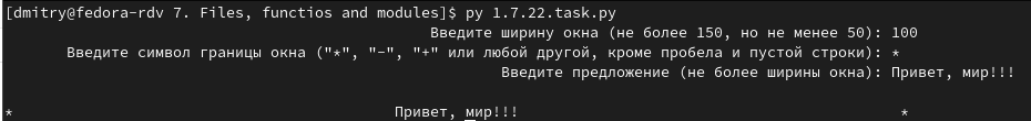 symbol = input("%100s" % "Введите символ границы окна (\"*\", \"-\", \"+\" или любой другой, кроме пробела и пустой строки): ")
