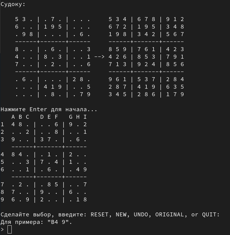 print('Сделайте выбор, введите: RESET, NEW, UNDO, ORIGINAL, or QUIT:')