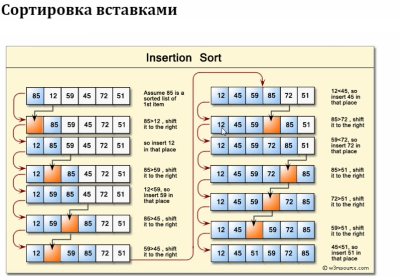 """СОРТИРОВКА ВСТАВКАМИ"""
